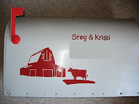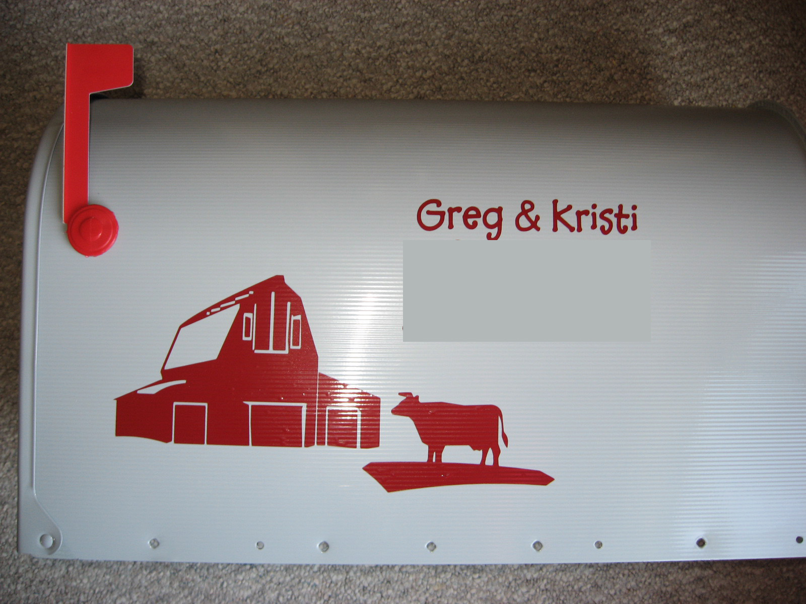 was crashed into by the snowplow! So I had to get ANOTHER one! The first one had stick people on both sides. Well, my husband was around as I was working on adding my outdoor vinyl decals to the 2nd mailbox. He wasn't keen on the idea of more stick people. So we settled! He got his farm stuff on one side and I got the stick people on the other side. I must say, it turned out nicely! I guess we need to thank the snowplow for that!